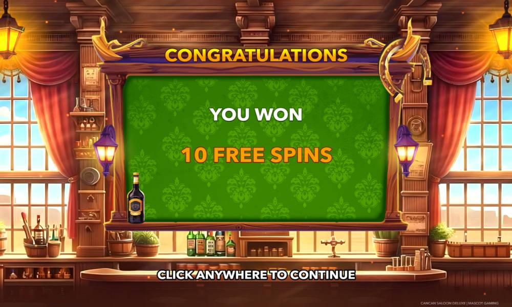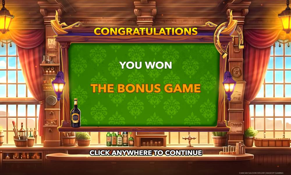 Cancan Saloon Deluxe — это слот, посвященный тематике Дикого Запада. Его выпустила студия Mascot Gaming в октябре 2024. Слот имеет небольшое поле с выплатами за линии, которые работают слева направо. Есть необычная функция: в каждом вращении (обычном и бесплатном) как минимум 1 случайный барабан получает свойство Wild во всю высоту. Еще есть бонус-раунд (стрельба по бутылкам) и риск-раунд (колесо фортуны).