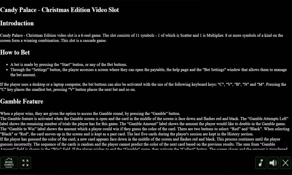 Чтобы начать играть в слот Candy Palace — Christmas Edition, нужно: