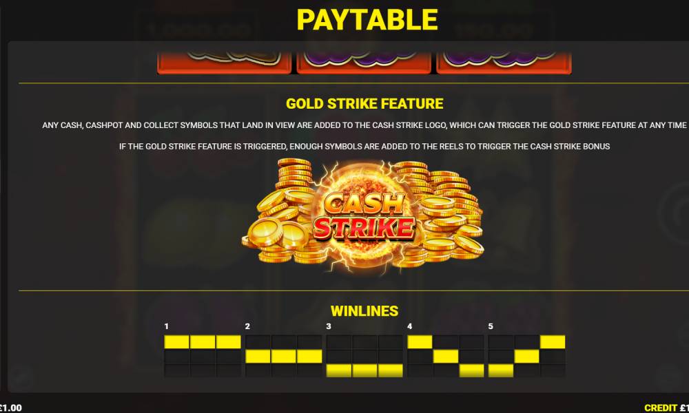 Cash Strike Bonus. Когда на каждом барабане есть хотя бы по одному огненному шару, запускается раунд респинов. Игроку дается три бесплатных вращения, которые возобновляются каждый раз при появлении знаков Cash на поле. Все символы Cash Collect являются липкими. Они собирают денежные значения до конца раунда. Cash Symbols после выпадения уходят с поля. Раунд заканчивается, когда сыграно подряд три респина без выпадения символов. Во время этой функции базовые знаки не появляются.