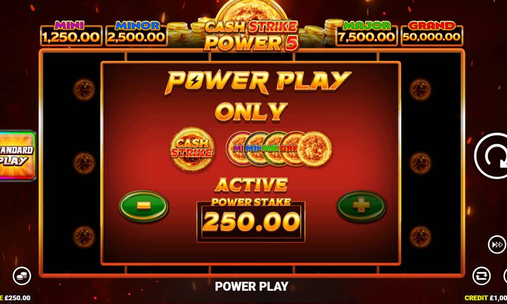 Power Play. Это формат игры, который может выбрать пользователь. Для этого он должен нажать на одноименную кнопку на поле. Теперь на барабанах будут появляться только огненные шары. Ставку на спин можно отрегулировать лишь до начала раунда. Благодаря этой опции у пользователя выше вероятность на получение денежного приза.