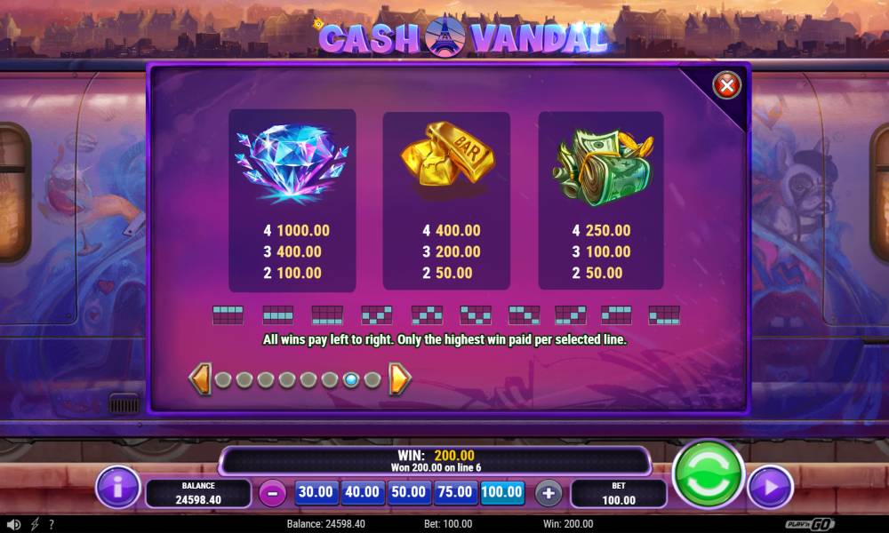 Это красочный и необычный слот Cash Vandal с интересным дизайном, несколькими локациями, увлекательными бонусами и другими функциями.