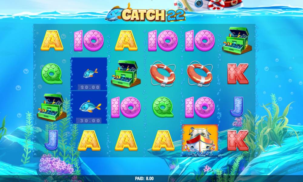 Catch22 — отличный выбор для поклонников рыболовной тематики и необычной игровой механики. В слоте используются классические символы Рыб с денежными значениями, которые собирает символ Рыбака. При выпадении двух Рыбаков запускается нестабильный бонус Catch 22 — все символы на барабанах превращаются в Золотых Рыб с ценными наградами. Обязательно протестируйте слот самостоятельно и загляните в наши эксклюзивные предложения казино.