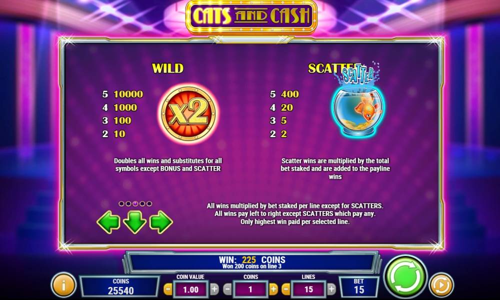 Игровой автомат Cats and Cash разработан с применением технологии HTML5 и относится к категории слотов со средней дисперсией. Хотя в нем нет столь привычной бонусной игры с бесплатными вращениями, он все равно довольно заманчив и интересен со всеми его функциями. Попробуйте и убедитесь сами.