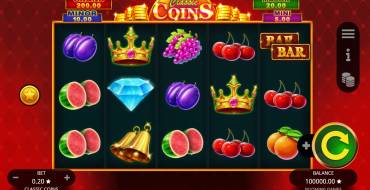 В слоте можно выиграть не более чем х10000 от ставки. Размер ставки можно задать в пределах от 0.10 до 50.00 в той валюте, которую установила администрация казино. Выплаты в Classic Coins происходят по 10 линиям. Все линии фиксированы, уменьшить их количество нельзя. В каждую должно входить минимум 3 одинаковых знака (или Wild в их числе). Линии работают слева направо и справа налево.