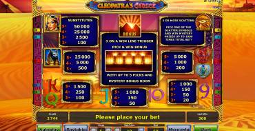 Накопительный джекпот Novomatic в Cleopatra’s Choice не разыгрывается.