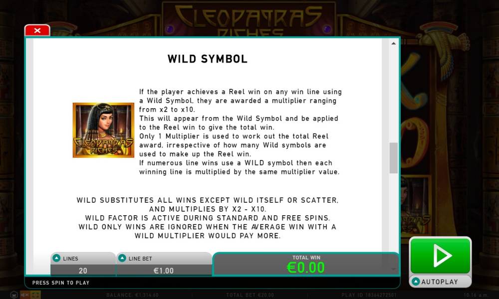 Играть на слоте на деньги дают возможность онлайн-казино, использующие игры этого производителя. Чтобы делать ставки реальными деньгами на Cleopatra’s Riches, нужно зарегистрироваться и внести депозит.