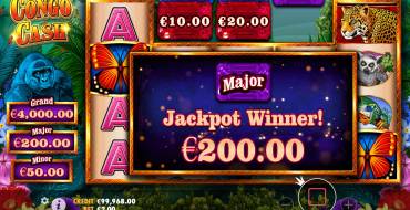 Gem Feature Rules — единственная зато очень интересная бонусная функция онлайн-слота Congo Cash. Она активируется, когда на 1 и 5 барабане выпадают бабочки, а на 2, 3 и/или 4 останавливается знак Congo Cash. Тогда приз, который находится над этим символом сверху, опускается и дается игроку. Это могут быть фриспины, денежные значения от х5 до х200, а также джекпоты.