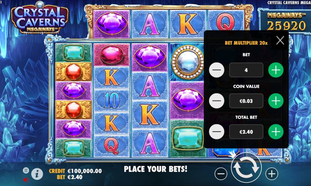 Игровой автомат Crystal Cavern Megaways от провайдера Pragmatic Play посвящен тематике драгоценных камней. Если вам улыбнется удача, то в этом слоте вы сможете выиграть крупные призы, вплоть до 10000 ставок.