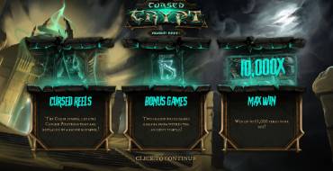 Слот Cursed Crypt состоит из пяти барабанов и четырех рядов, предлагая 1024 способов выигрыша. Диапазон ставок — от 0,10 до 100 у.е за спин. Максимально возможный выигрыш предусмотрен в размере 10,000x от ставки.