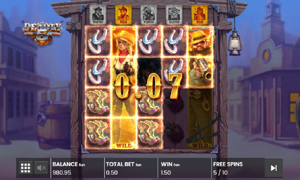 В слоте Deadly 5 известная студия Push Gaming приглашает игроков погрузиться в вечную тему покорения Дикого Запада. Более того, разработчики обещают, что за голову каждого из грозных ковбоев назначена солидная цена. На этот раз креативная команда решила удержаться от безудержных инноваций и порадовать любителей классики.