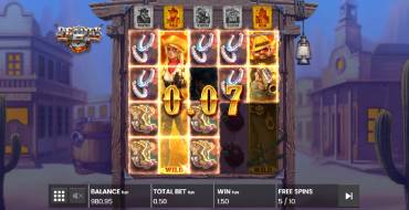 Чтобы запустился раунд бесплатных спинов Sheriff, необходимо выпадение в любом месте на барабанах трех, четырех или пяти символов Scatter. Это дает, соответственно, десять, пятнадцать или двадцать бонусных вращений и дополнительно — выигрыш в размере 3x, 10x или 50x от ставки. На пятом барабане остается полностью сложенный липкий джокер.
