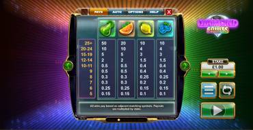 В слоте Diamond Fruits выплаты осуществляются по системе Cluster Pays.