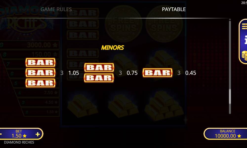 Максимальная ставка в слоте Diamond RIches равна $50.