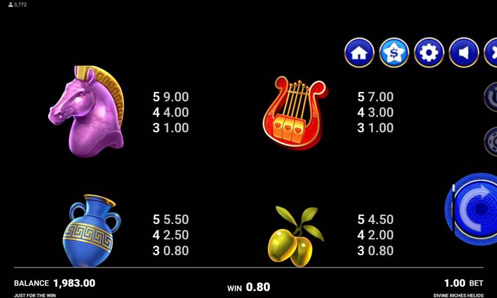 Для изучения Divine Riches Helios рекомендуется посвятить некоторое время игре в демо. На практике слот окажется не таким уж и сложным, а все механики окажутся действенными и понятными. К тому же, демоверсия поможет разобраться в не самом стандартном интерфейсе, с совершенно непривычным расположением кнопок.