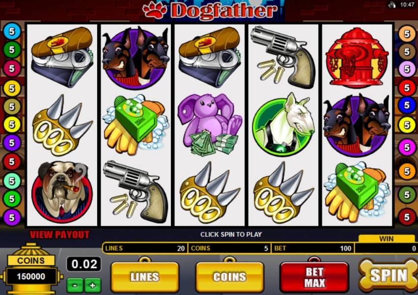 Dog Father - это пятибарабанный видеослот с 20-ю линиями выплат производства Microgaming. Из дополнительных опций в игре есть свободные вращения и бонусный раунд. Также в игре задействованы скеттеры и дикий символ. Дикий символ функционирует как джокер. Он может заменять собой любой символ кроме символа разброса. Благодаря дикому символу количество выигрышных комбинаций увеличивается. Максимальный размер джек-пота составляет $13.000.