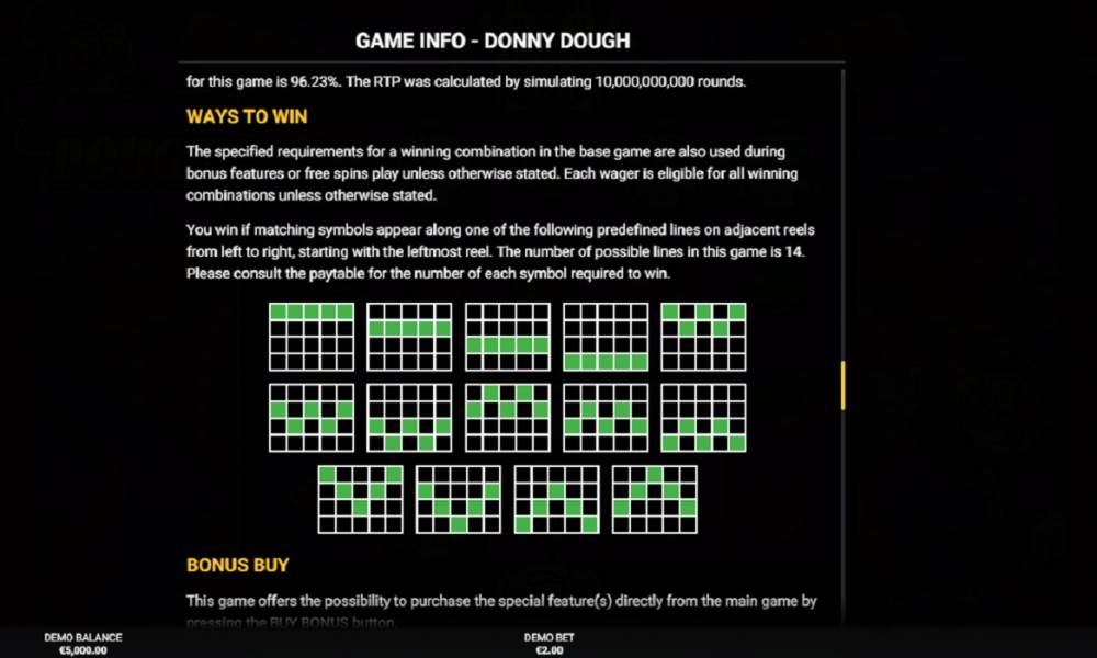 RTP слота Donny Dough 96.23%, и это превосходный показатель для таких слотов.