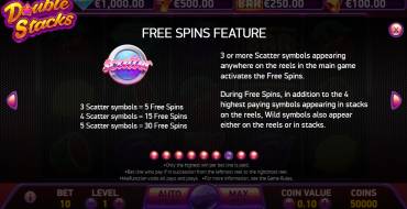 Игровой автомат «Двойные стеки» состоит из пяти барабанов. Изначально на экране размещаются пятнадцать картинок, но каждая из них в определенных ситуациях может раздвоиться. Соответственно, символов может быть до тридцати, и каждый из них способен формировать комбинации.