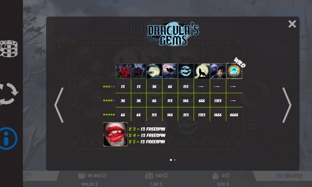 При знакомстве со слотом Dracula's Gems стоит выделить пять минут на изучение кнопок и меню: