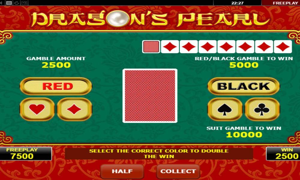 В слоте имеется специальная риск-игра, которая позволит увеличить выигрыш в случае угадывания верного цвета или масти карты.