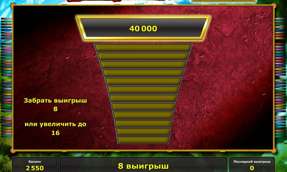 Замечательный игровой слот, красивый, яркий интерфейс. К сожалению нет бонусных поощрений, но зато есть возможность сыграть на интерес, потренироваться, приловчится, а потом можно и на деньги сыграть. Спасибо.