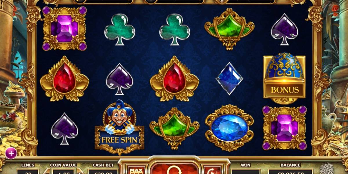На экране слота появляются карточные масти, вырезанные из драгоценных камней, и красочные медальоны. Базовых картинок здесь восемь.