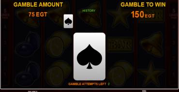 Gamble. Пользователи могут по своему желанию переходить в раунд Gamble после каждого удачного спина. Полученный приз будет ставкой в новой игре. Нужно угадать, красная или черная карта лежит на столе. В случае правильного ответа игрок получает удвоение выигрыша, неправильного — его потерю. Забрать награду можно в любой момент сразу после ее начисления или же вновь сделать выбор.