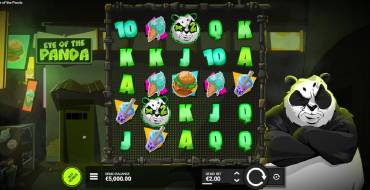 Игровой процесс в Eye of the Panda осуществляется на пяти барабанах с пятью рядами символов и 27 линиями выплат. Минимальная ставка составляет 0.10 у.е, а максимальная — 100 у.е.