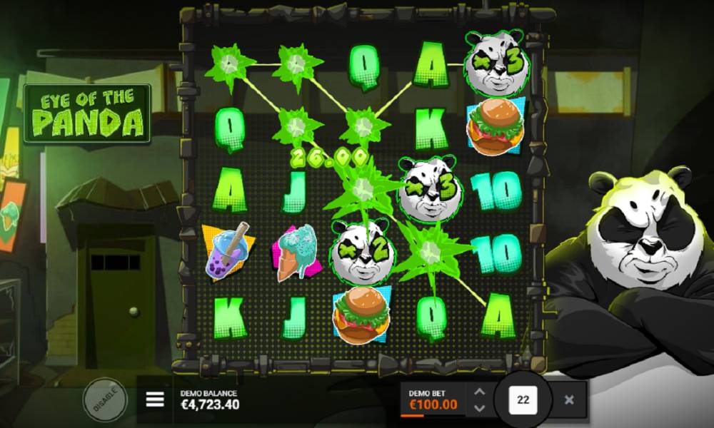 Основная игра Eye of the Panda увлекает благодаря механике суперкаскадов. Каждый выигрыш активирует каскад, при котором символы, входящие в призовую комбинацию, исчезают, позволяя новым знакам занять их место.