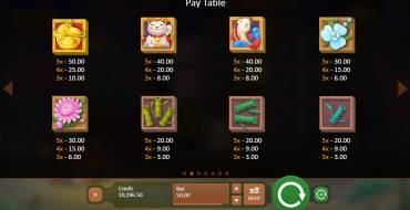 Выплаты рассчитываются по коэффициентам от х3 до х50. Они умножаются на стоимость условных монет. По ходу раунда выигрыши суммируются, а затем сразу выводятся на основной счет.