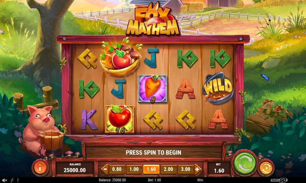 Слот Fox Mayhem от Play'n Go приглашает всех любителей азартных игр в пригород, на уютную и ухоженную ферму. Лето подходит к концу, урожай поспевает, а уставший от ежедневных забот фермер прилег поспать. И тут начался беспредел! Хитрый лис и прожорливый поросенок хотят добраться до свежих овощей, а хищник еще и до аппетитного бекона оппонента. Помогите навести порядок в этом некогда спокойном месте.
