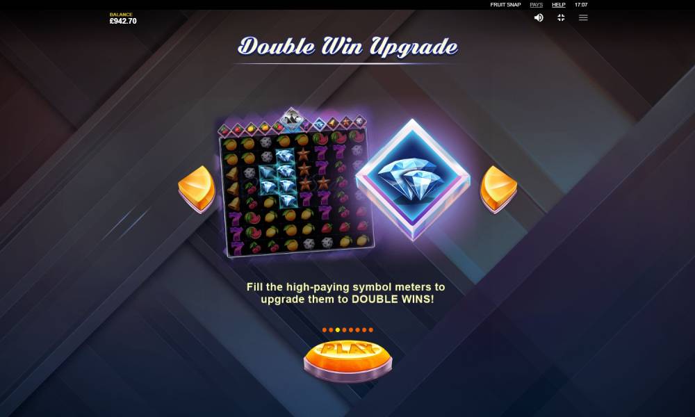 Игра, действительно, динамичная. Оплачиваются не цепочки символов по линиям, а группы соседних картинок – кластеры. Игровой процесс одновременно похож и на тетрис, и на слот с принципом падающих символов, например – Gonzo’s Quest. Как и в «Гонзо», в автомате «Фрут Снэп» есть счётчик непрерывных выплат – каждый новый выигрыш увеличивает множители для комбинаций.
