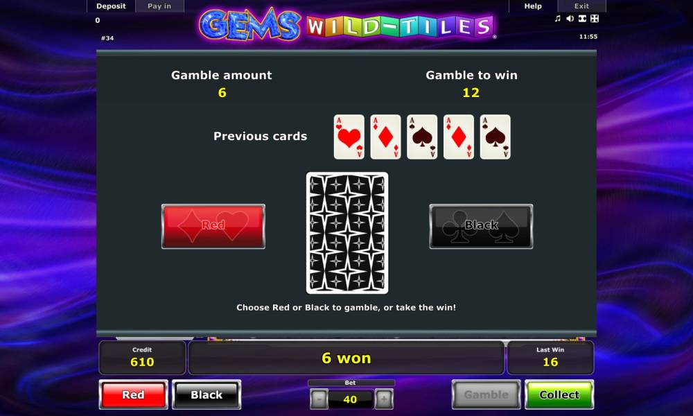 Рассматриваемая игра есть на разных языках, включая русский, поэтому вам остается лишь подобрать онлайн-казино с нужным вариантом. Основную часть экрана заполняет игровое поле, состоящее из двадцати пяти ячеек. Ниже располагается панель управления с окошком выбора ставки, информационной строкой и несколькими кнопками. Запустив новый раунд, вы далее лишь наблюдаете за происходящим. При начислении выплаты появляются кнопки начала риск-игры и вывода денег. Вам нужно принимать решение, как поступить. Правила игры рассматриваются в таблице и справочном разделе. Рекомендуем обязательно изучить оба варианта, потому что в них подается разная информация. Регулировать в Gems Wild Tiles можно лишь размеры экрана и параметры звука. Скачивать игру не нужно.