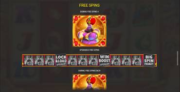 Раунд Free Spins — это главная бонусная функция онлайн-слота Genie Jackpots Big Spin Frenzy. При выпадении 3, 4, 5 символов Scatter игрок получает 10, 15, 20 бесплатных вращений соответственно. Во время игры дикий символ будет не просто собирать и выплачивать все денежные знаки, он также начнет заполнять шкалу прогресса. За каждые 4 собранных Джина игрок получает бонус — Lock&Load, Win Boost, Big Spin Frenzy. Благодаря начисляемым респинам и увеличению размера денежных знаков шансы на большую прибыль увеличиваются.