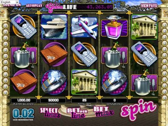 Glam Life – это пятибарабанный слот с тридцатью линиями выплат. Что отличает эту игру от многих других, это прежде всего, наличие прогрессивного джекпота. Но это не единственное, что выделяет эту игру на общем фоне. В ней все сверкает и искрится. Такие игры не должны стоять в общем ряду с другими, ведь на кон поставлена роскошная жизнь. С самого начала, когда игра только загружается мы видим на экране атрибуты роскошной жизни. Это яхта, инкрустированный бриллиантами телефон, шампанское и платиновые кредитные карты и прочие элементы, которые возносят вас наверх социальной лестницы. Сразу видно, что вы по жизни везунчик, то ли в силу своего таланта, то ли вам повезло с рождения. Но как бы там ни было, удержать все эти блага и не потеряться в круговороте праздности – для этого тоже нужен талант. Это то, что не каждый способен преодолеть, и потому летят в этого Эвереста туда, откуда приходят. Посмотрим, куда нас вознесет эта игра, и что мы сможем в ней получить.