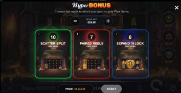 | Бонусные игры | Free Spins Bonus Game, Scatter Split Feature, Paired Reels Feature, Locked Symbols Feature, Hyper Bonus |