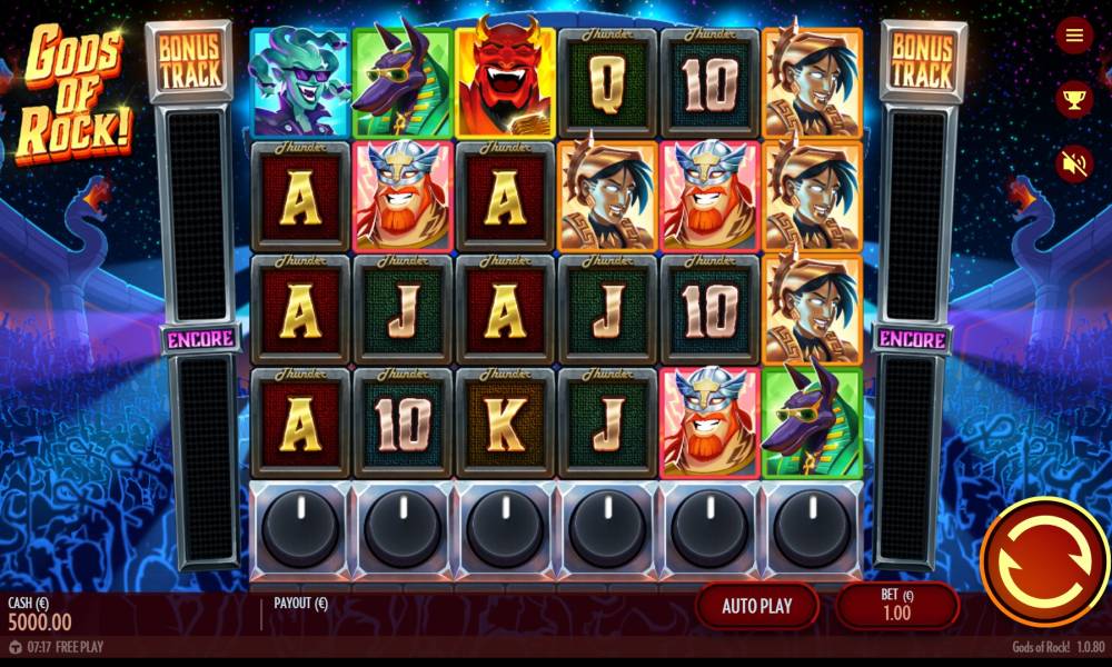 Игровой автомат Gods of Rock от провайдера Thunderkick посвящен музыке. Если вам повезет, то в этом слоте вы сможете выиграть крупные призы, вплоть до 20000 ставок.