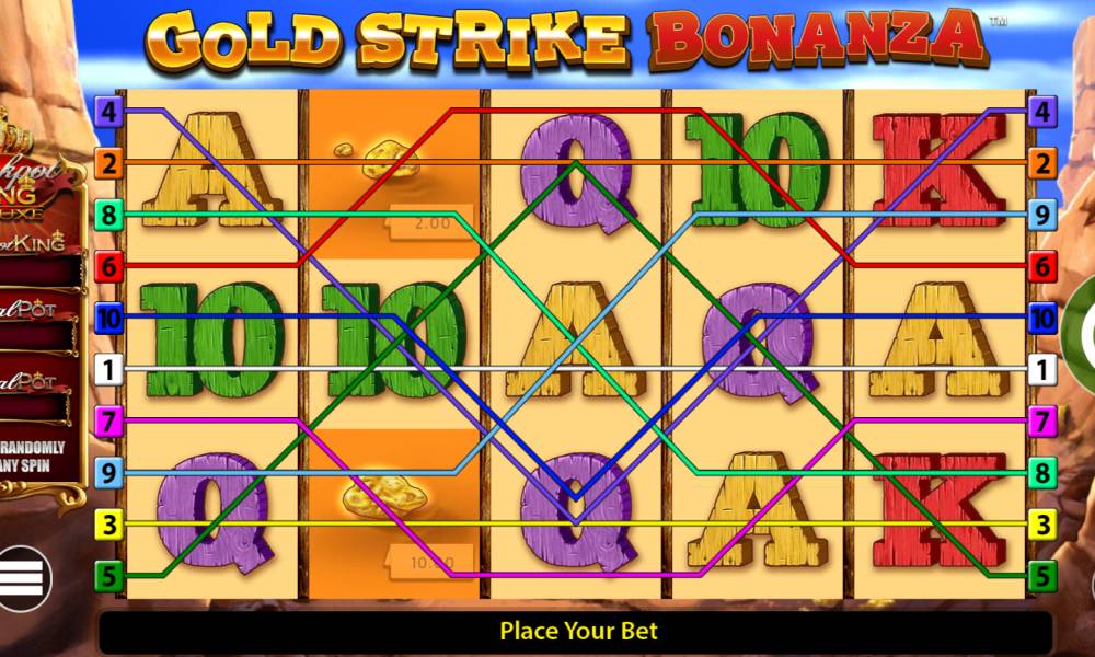 Интерфейс слота Gold Strike Bonanza Jackpot King понятен каждому пользователю. Для запуска игры необходимо: