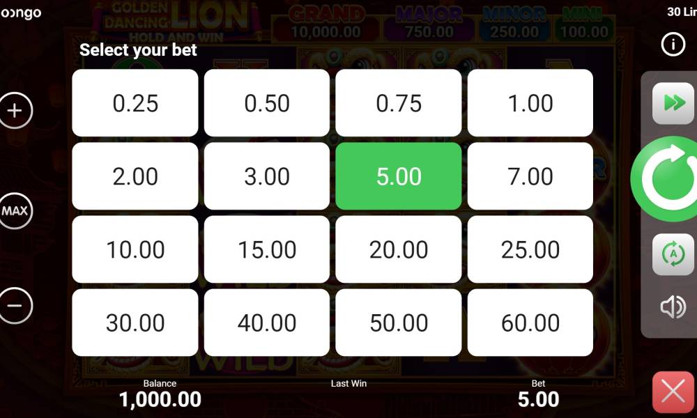 Опробовать слот Golden Dancing Lion от провайдера Booongo без риска вы можете прямо на нашем сайте. На нашем сайте вы найдете демо-режим, для запуска которого не нужна регистрация.