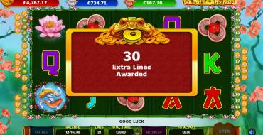 Игровой автомат посвящен китайской культуре. Поэтому на барабанах изображены предметы, имеющие непосредственное отношение к данной тематике. Вы увидите монетки с дырочками, карпы кои, лотос, черепаха и карточные номиналы, выдержанные в стиле иероглифов. Одинаковые картинки могут следовать друг за другом в колонках, но длинными цепочками они не выпадают. Далее о специальных элементах с расширенными возможностями:
