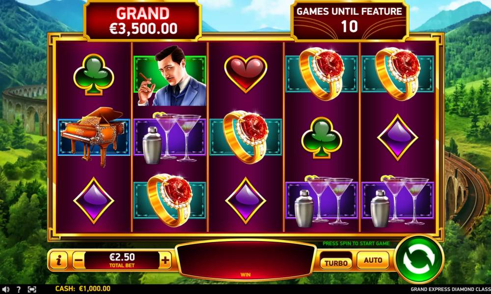 Слот Grand Express Diamond Class от провайдера Ruby Play имеет поле вида 5х3 с 50 игровыми линиями.