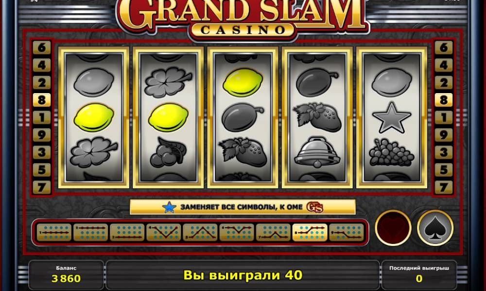 Сразу скажем, мы не знаем, почему этот бесплатный игровой автомат производства компании Novomatic называется «Гранд Слэм Казино». Возможно, это какая-то суперпопулярная модель видео-слота из одноименного оффлайнового заведения. Но не будем строить догадки, а просто перейдем к обзору данной игры, подготовленному экспертами портала Casinoz.
