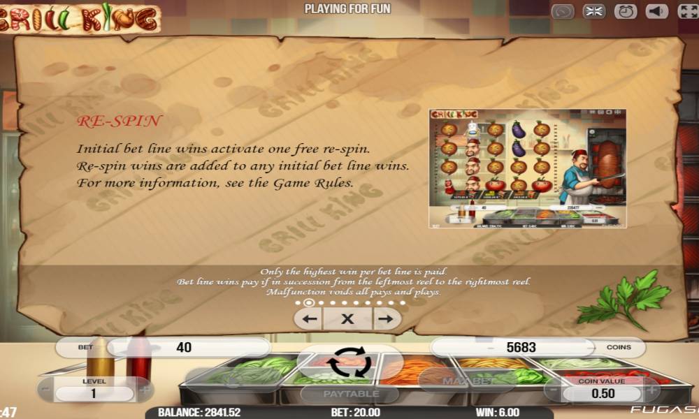 Тестируйте игровой автомат «Король гриля» бесплатно на Casinoz или играйте в Grill King на деньги в интернет-казино, использующих разработки Fugaso. Ниже перечислены их логотипы со ссылками на порталы. Приглашаем делиться мнениями об аппарате в комментариях. Пишите отзывы и ставьте оценки.