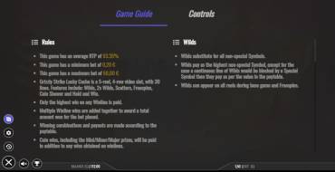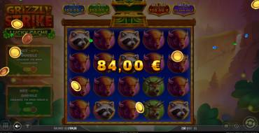 В видеослоте Grizzly Strike Lucky Cache имеется 5 барабанов в 4 ряда с 30 фиксированными линиями выплат. Для выигрыша необходимо, чтобы на соседних барабанах (без пропусков) выпали одинаковые символы, при этом счет ведется с крайнего левого барабана в правую сторону. Символы Scatters учитываются в любом месте. При появлении 3 и более одинаковых символов ставка умножается на определенный множитель, значения которых указаны в таблице выплат. Максимум в размере х100 к действующей ставке дает выпадение 5 скаттер. Ставки можно выбирать из диапазона 0.20-50 евро.