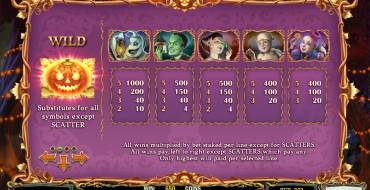 «Счастливого Хэллоуина» - это 5-барабанный видео-слот с пятьюдесятью линиями и двадцатью картинками на экране. Вы можете задействовать любое количество полос из числа доступных. Ставки по ним автоматически выравниваются. Диапазон простирается от одной до пяти монет достоинством 0.01, 0.02, 0.04, 0.06, 0.08 или 0.10 евро. Таким образом, можно поставить не более двадцати пяти евро (уточняйте данный пункт в заведении, где вы будете играть). Помимо стандартных картинок, формирующих комбинации по общим правилам, здесь представлены два особых символа и раунд фри-спинов с дополнительными игровыми возможностями. Начисление выплат по базовым изображениям происходит согласно наиболее распространенным принципам. Несколько одинаковых элементов образуют на активной полосе непрерывную цепочку, начинающуюся с первой колонки. Для расчеты суммы выигрыша ставка по данной линии умножается на коэффициент данной комбинации, который может быть от х4 до х1000. Если цепочек несколько, выплаты суммируются, но помните, что с каждой отдельной взятой линии засчитывается лишь самая длинная комбинация. Об исключениях читайте ниже. Игру по шансам можно запустить при получении кредитов по результатам спина. Она запускается на дополнительном экране. Здесь нужно угадывать цвет или масть карты. Если вы сможете верно определить цвет, выигрыш удвоится. Правильно указанная масть увеличивает сумму в четыре раза. Действовать разрешается несколько раз подряд, но ошибаться нельзя. Уровень возврата Happy Halloween составляет 96,5%.