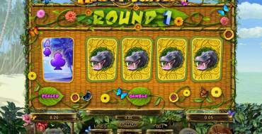 «Счастливые джунгли» - это видео-слот с пятью барабанами и двадцатью линиями, в котором пользователи борются за выплаты, начисляемые по комбинациям и некоторыми другими способами. Играть на игровом автомате Happy Jungle разрешается по любому количеству доступных активных линий. Допускается ставка от одного до пятидесяти центов на каждую позицию. На спин принимается до десяти долларов. В модели представлены базовые картинки, особые символы, бесплатные спины, рискованная игра по шансам, дополнительные множители и другие функции, делающие геймплей интересным и разнообразным. Картинки на экране видео-слота выстраиваются в три ряда. Для получения выплаты обычным способом нужны несколько одинаковых картинок. Они должны расположиться на активной линии слева направо, начиная с первого барабана. Цепочка должна быть непрерывной, и только старшая комбинация по каждой полосе дает выигрыш. Его сумма рассчитывается умножением коэффициентов (от х3 до х5000), указанных в таблице, на ставку по линии. Если после остановки барабанов сформировались несколько комбинаций, выплаты по ним суммируются. Общий выигрыш можно забрать или же рискнуть деньгами в раунде на удвоение. Здесь вы увидите несколько закрытых карт и одну открытую. Вам нужно выбрать одну из карт, лежащих рубашкой вверх. Если она окажется старше карты дилера, выплата увеличится в два раза. Если она будет младше, вы проиграете деньги. При равных картах объявляется ничья. В одном раунде можно играть не более пяти раз подряд. Мы не нашли информации о заложенном в Happy Jungle теоретическом возврате.