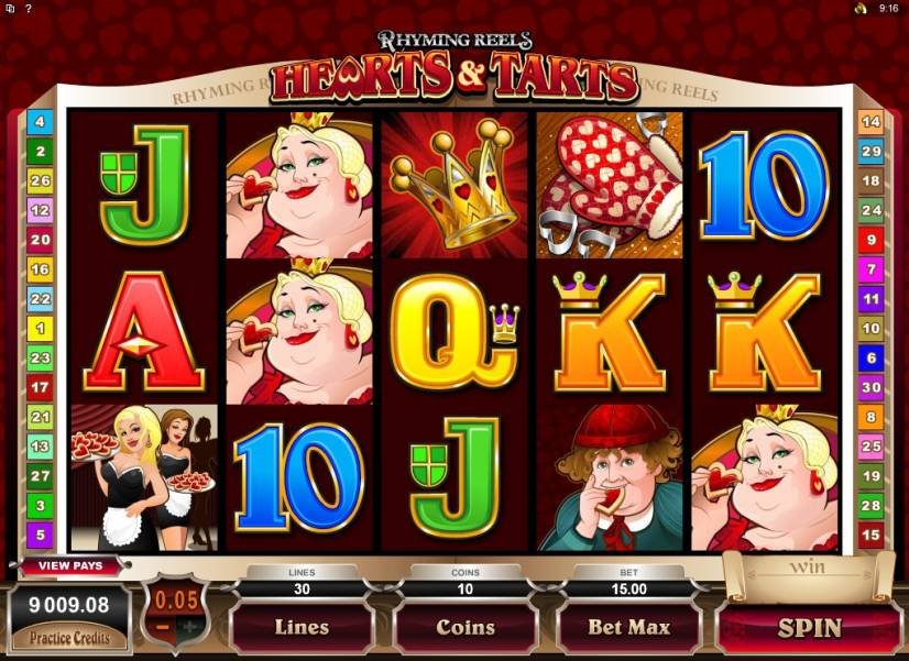 Как видите, стишок нехитрый, но он широко известен в англоязычных странах. Его даже использовал Льюис Кэрролл в сказке «Алиса в стране чудес». Ему же посвящен новый бесплатный игровой автомат Hearts and Tarts - Rhyming Reels («Черви и печенье: Рифмующиеся барабаны»), созданный компанией Microgaming. Это шуточный слот с забавными персонажами и красочным оформлением.
