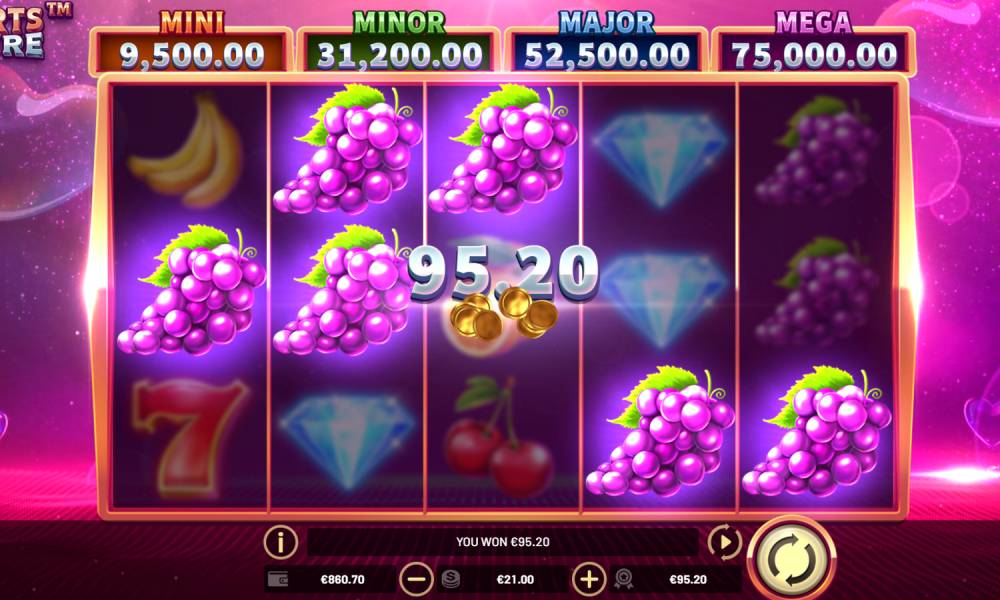Heart's Desire — это приятный романтичный слот, который понравится тем, кто любит риск. Игровой автомат держит в напряжении за счет того, что выдает мало призовых комбинаций. Зато награды в основном крупные и позволяют окупить десятки сыгранных раундов. А если повезет, то удастся сорвать джекпот.