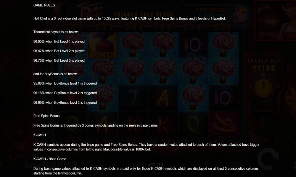 Волатильность. У Hell Chef она 7/10. Такая отдача хорошо сбалансирована: слот сыпет не слишком часто, но и размеры выплат будут не всегда маленькими. Такое сочетание лучше подходит для длительных сессий.