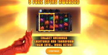 Golden Bet (HyperBet). В слоте можно выбрать один из двух уровней игры: Nitro или Hellfire, или отключить режим Golden Bet. При отключенной функции действуют стандартные правила и условия, а минимальная ставка составляет 0.20. В режиме Nitro удваивается шанс запуска фриспинов, но минимальная ставка повышается до 0.80. В Hellfire шанс старта фриспинов такой же, как в Nitro, но добавляется дополнительный ряд, и размеры поля увеличиваются до 6х5, а ставить можно не меньше 2.00.
