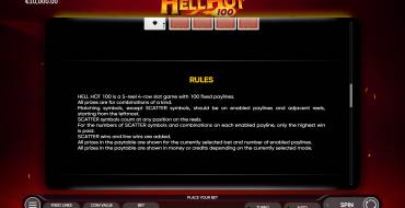 Слот Hell Hot 100 от провайдера Endorphina имеет классическое игровое поле, которое состоит из 5 барабанов по 4 символа. Все выплаты осуществляются по 100 игровым линиям, число которых можно менять.